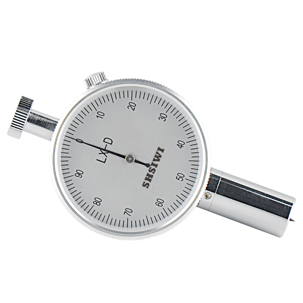 ⑴、測定前應檢查硬度計的指針在自由狀態下應指向零位。如指針量偏離零位時,可以松動右上角壓緊螺釘,轉動表面,對準零位。然后將硬度計壓在玻璃板上,壓針端面與壓足底面緊密接觸于玻璃板上時,指針應指向100+/-1HA,如不指向100+/-1HA時,可輕微按動壓針幾次,如仍不指100+/-1HA時,則此硬度計不能使用。如在邵氏硬度計測試機架上使用時,可撥動手柄,使工作臺上升至定荷砝碼抬起,使壓針端面與壓足平面緊密接觸于玻璃工作臺時,指針應指向100+/-1HA。如不指100+/-1HA時, 可調整工作臺平面的調節螺釘,若調整后指針仍不指100+/-1HA時,最好送生產單位調整為宜。
